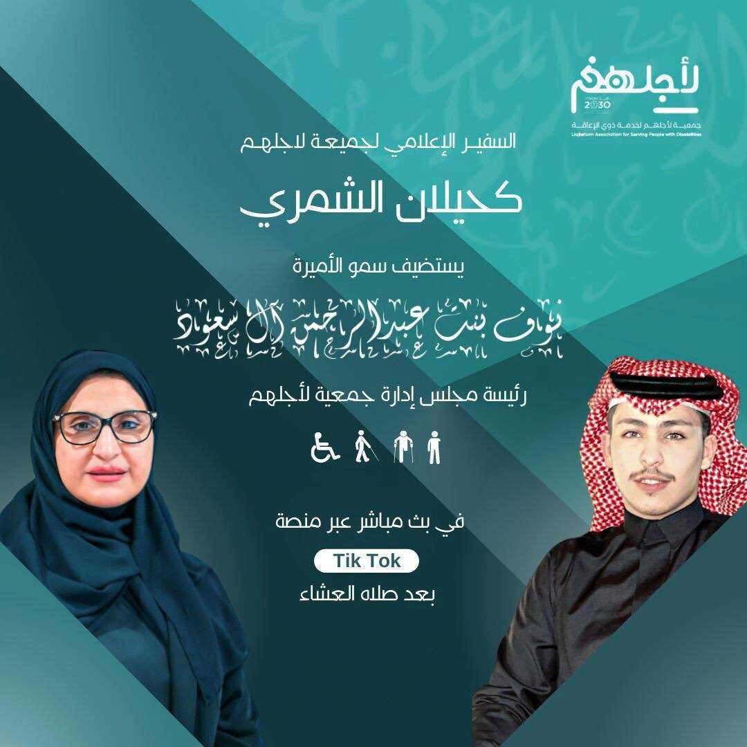 - 21 | يناير السفير الاعلامي لجمعية للأجلهم كحيلان الشمري يستضيف سمو رئيس مجلس إدارة الجمعية الأميرة نوف بنت عبدالرحمن آل سعود في بث مباشر عبر منصة TikTok.